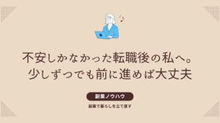 💼 副業で暮らしを立て直す 不安しかなかった転職後の私へ。少しずつ整っていくから大丈夫って、今なら言える 転職後に収入が減って不安だった日々。焦っても空回りしていた私が、「整える暮らし」で少しずつ心と家計を立て直した体験を綴ります。無理せず前を向きたい人へ。 2025.10.24 💼 副業で暮らしを立て直す