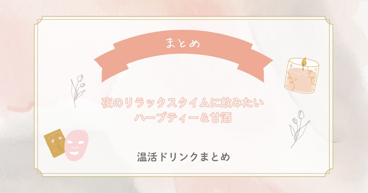 今日は、私が夜に飲んで「ほっとする」と感じたものや、口コミで人気の温活ドリンクをまとめてご紹介します。
